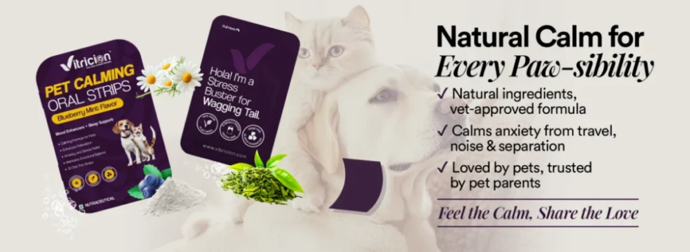 Diwali celebrations can be stressful for pets due to loud fireworks & bright lights. Discover how natural Pet Calming Oral Strips from Vitricion offer fast-acting, easy to use calming strips for anxious dogs & cats this festive season. Learn how to keep your pet relaxed & comfortable during Diwali.