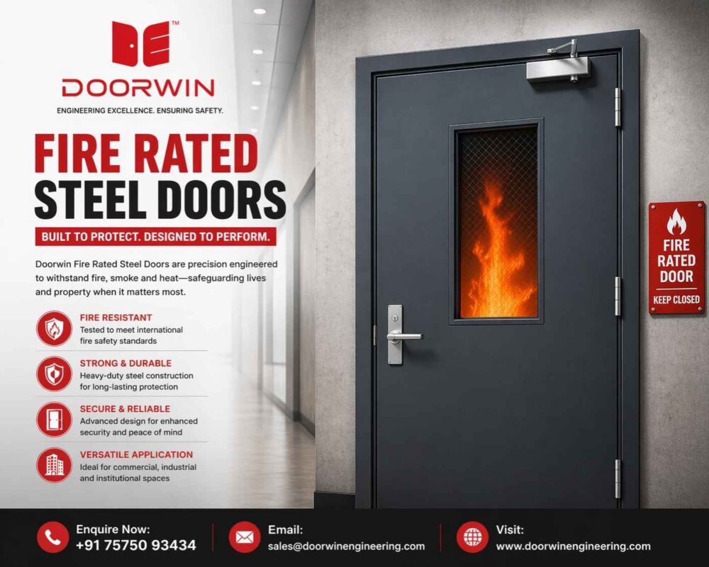 Fire Rated Steel Doors are a critical safety solution designed to protect lives and property during fire emergencies. Doorwin Engineering is a trusted manufacturer in Ahmedabad, India, offering high-quality fire rated steel doors that combine strength, durability, and advanced fire protection.